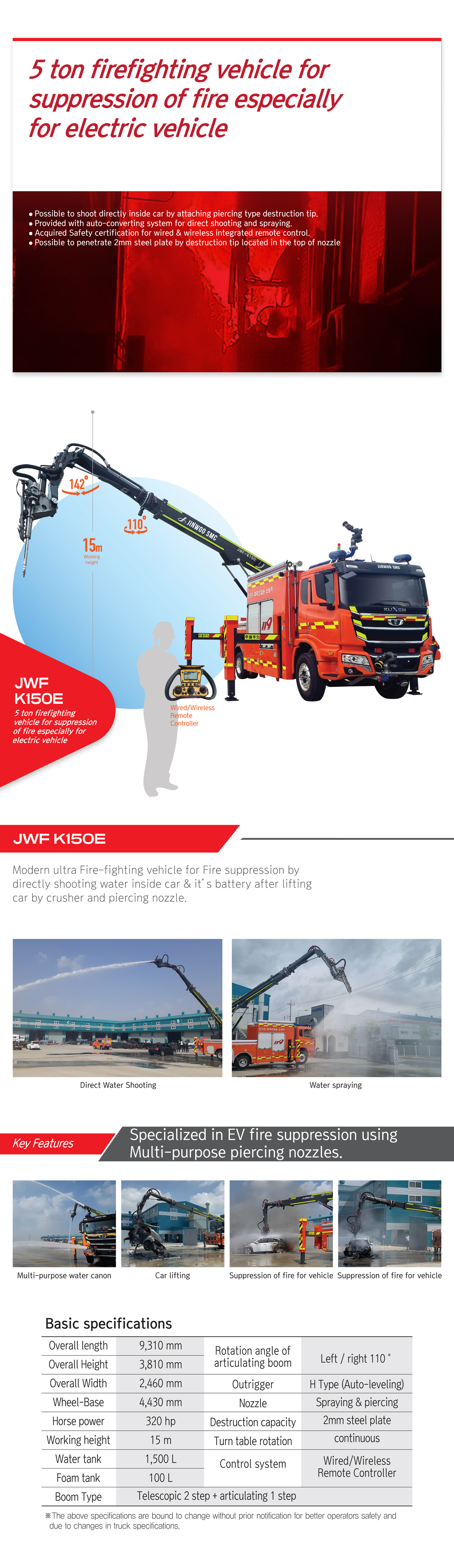 • Acquired safety for firefighting manby wired & wireless integrated remote control