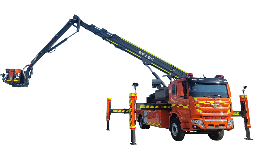 • 4단 직진붐 + 1단 굴절붐 적용으로 좁은 골목 사이의 화재에 빠른 대응 가능