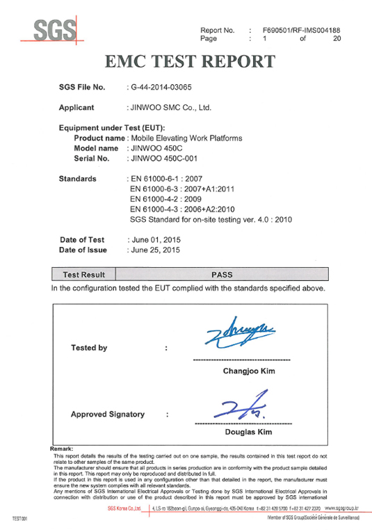 | 2 | F690501/RF-IMS004183 | ОТЧЕТ ОБ ИСПЫТАНИЯХ EMC | 2015. 06. 01 |