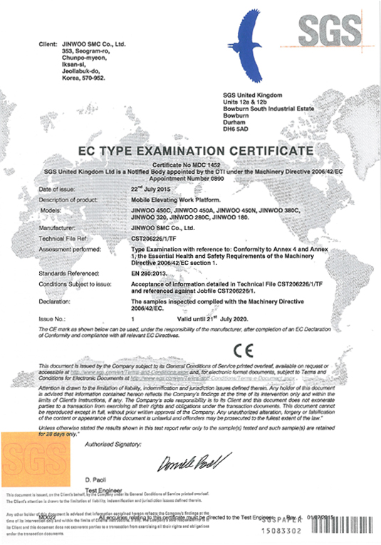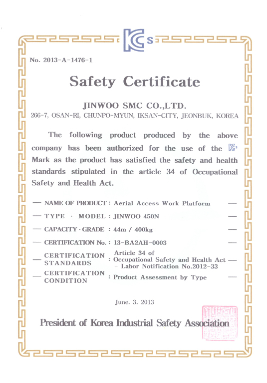 | 2 | ISO 9001:2008 / KSA 9001:2008 | Проектирование, разработка, производство автовышек | 2009. 01. 19 |