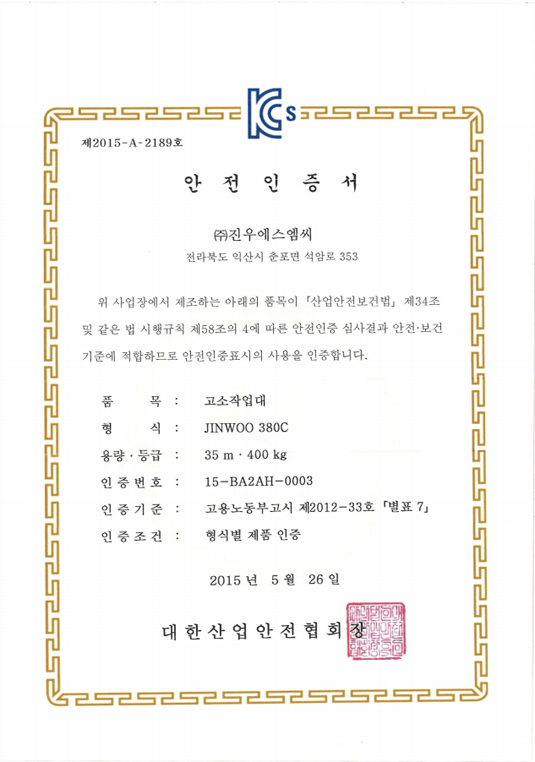 | 8 | 15-BA2AH-0003 | JINWOO 380C | 2015. 05. 26 |