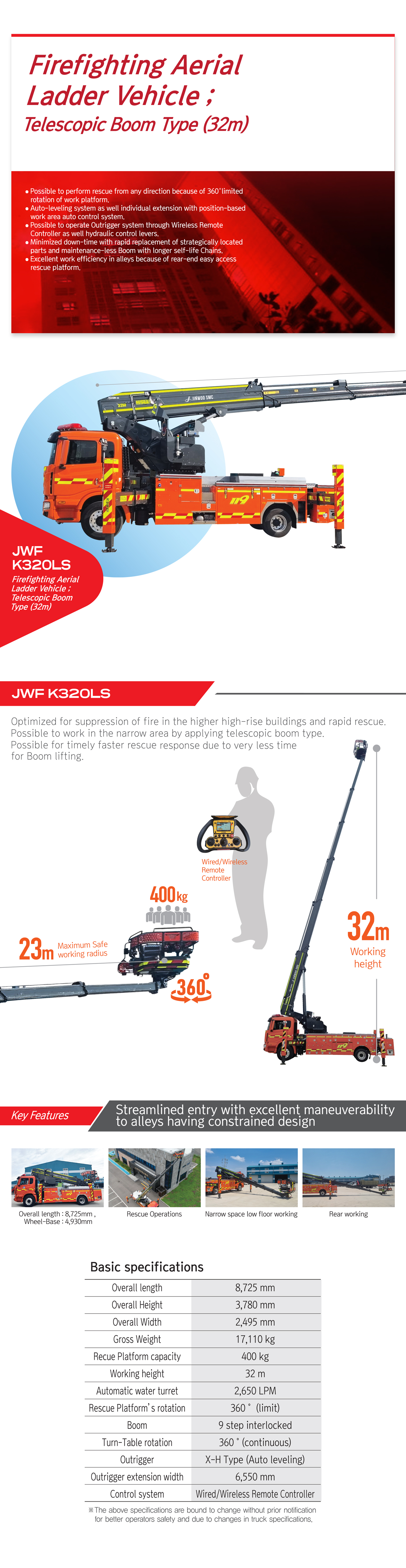 • Possible to save a life at any direction because of 360° limited rotation of work platform
