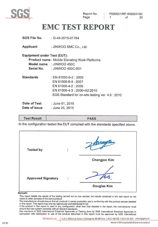 | 2 | F690501/RF-IMS004183 | ОТЧЕТ ОБ ИСПЫТАНИЯХ EMC | 2015. 06. 01 |